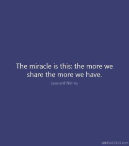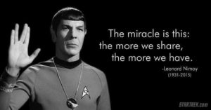 The Vulcans knew the secret of miracles or abundance, and or the abundance of miracles! A great friend once told me the difference between abundance and prosperity (usually lumped together). Abundance is having access to resources at the time you want them, the amount you want them to be, and the way you want them. Not the accumulation of stuff. And that Prosperity truly means the Enjoyment of that abundance and the sharing of it. (From the book Sacred Commerce)