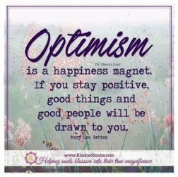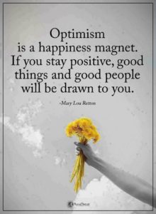 Optimism is a happiness magnet. If you stay positive, good things and good people will be drawn to you.