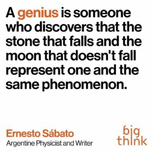 “Einstein began to look at a mystery that had puzzled Astronomers for generations. According to Isaac Newton, the planet Mercury should be around the sun like this, but it was known for quite a while that the orbit of Mercury deviates from Newton’s Laws of Motion. It tilts a little bit, so the orbit instead of going like this begins to tilt, and it begins to make a pattern, like the petals of a flower.”