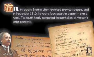 100th Anniversary of Einstein’s Theory of Relativity with the orbit of Mercury which was how he figured out the Mathematics for the Theory. It took versions, but he didn’t give up.