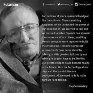 “What the world needs now is a true conversation. Not a conversation between our adaptations, disguises and defenses. Not a conversation that hides our truth under a bushel of shame. Not a conversation about what doesn’t matter. But a conversation that is revealed, revealing, deeply genuine. Perhaps that is the key to most everything – true sharing from the deep within, nothing to hide, nowhere to hide it. Out with the old, in with the True…” — Jeff Brown