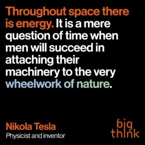 “Throughout space there is energy. It is a mere question of time when men will succeed in attaching their machinery to the very wheelwork of nature.” — Tesla
