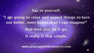 Thought for today: Say to yourself, “I am going to relax and expect things to turn out better, even better than I can imagine!” And then just let it go. It really is that simple.