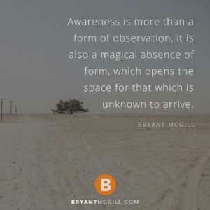 Awareness changes the world, because awareness changes your mind. When you change your mind, how you experience the world changes with it. Awareness makes you powerful. Awareness is power. The greater your awareness; the greater your power. Developing awareness is a practice of deep and active sensing, perceiving, feeling, and most importantly, connecting. And when connecting, it is also important to connect with emptiness. An expanded mind does not mean full to the brim; open spaces are beautiful too. Just as pure silence is more than observation, as it informs from non-observation, greater awareness is not exclusively about observing. Awareness is more than a form of observation, it is also a magical absence of form, which opens the space for that which is unknown to arrive. Life is speaking to you, through the portal of your awareness. Each step toward greater awareness, unlocks gifts and freedoms, which can only be granted from within. Most of what we miss out on in life, is simply because we do not notice. Allow new awareness to bring you the gifts for-which your soul has restlessly been longing. Allow awareness to complete you.