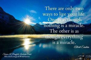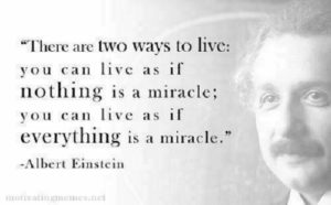 “As I look back over the truly crucial events in my life I realize that they were not planned long in advance. Albert Einstein said, ‘There are only two ways to live your life. One is as though nothing is a miracle. The other is as though everything is.’”